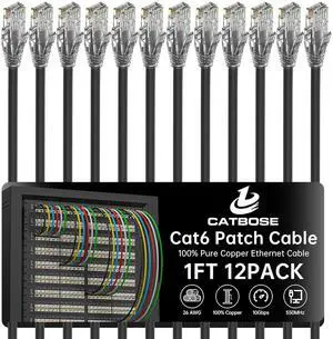 Cat 6 Ethernet Cable 2FT (24Pack), Cat6 Ethernet Patch Cable 10Gbps, High-Speed UTP Cat6 Network Cable Pure Copper, Cat 6 Cable for Home and Office Network, Black
