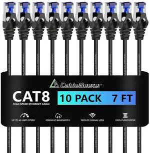 CableGeeker Patch Cables Cat 8 7ft 10 Pack Slim, Cat8 Ethernet Patch Cable 40G 2000MHz Support, Snagless RJ45 Cat 8 Patch Cable for Patch Panel to Switch, Flexible Network Cable - 7 Feet Black
