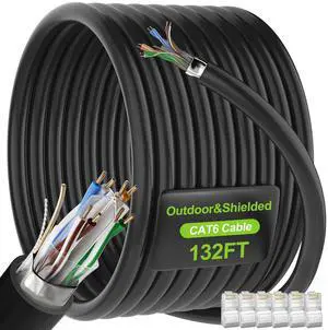 Cat 6 Shielded Ethernet Cable 132ft, Cat 6 Outdoor Ethernet Patch Cable 23 AWG, Waterproof, Direct Burial, In-Ground, POE, UV Jacket, CCA Copper Clad, Network, Internet, Cat6 125+ft, for Router, PC