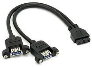 USB 3.0 Dual Ports A Female Screw Mount Type to Motherboard 20pin Header Cable Black