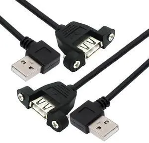 2pcs/lot Left & Right Angled Type USB 2.0 Type-A Male to USB Female Extension Cable Panel Type 90 Degree 25cm