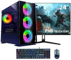 HAJAAN Gaming PC Desktop Tower - AMD Ryzen 7 5700X, RTX 5060 8GB GDDR6, 32GB DDR4 RAM, 1TB NVMe M.2 SSD, 24" Inch Curve Gaming Monitor, Windows 11 Pro, WiFi