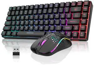 K84 Wireless Keyboard and Mouse Combo, Rainbow Backlit Rechargeable Battery, 75% Layout TKL Ultra Compact Gaming Keyboard & Lightweight 3200 DPI Honeycomb Optical Mouse (Black)