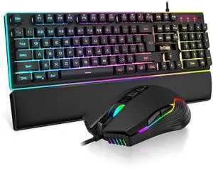 K10 Wired Gaming Keyboard and Mouse and Wrist Rest Combo, RGB Backlit, Mechanical Feel Anti-ghosting Keyboard + 7D 7200 DPI Mice+Soft Leather Wrist Rest 3 in 1 PC Gamer Accessories(Black)
