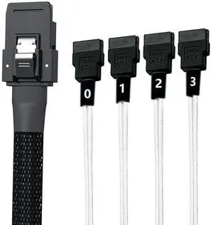 BUCIER 80cm Mini SAS 4i SFF-8087 36 Pin Host to Reverse 270 Degree Angled 4 SATA 7Pin Target HDD Hard Drive Splitter Cable 10Gbps