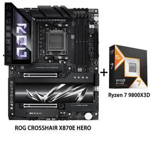 ASUS ROG CROSSHAIR X870E HERO AMD X870E AM5 ATX motherboard, Advanced AI PC ready, 18+2+2 power stages, DDR5, PCIe 5.0, 5x M.2, Wi-Fi 7, USB4, AI Overclocking, Core Flex, PCIe Slot Q-Release Slim- Model #: ROG CROSSHAIR X870E HERO