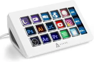 A.Jazz AKP153 Stream Studio Controller Keypad-Type-c Wired with 15 Macro LCD Key&1 Side Screen Display Detachable Stand for Multi Action Triggered in Win MAC Twitter TikTok YouTube OBS App(White)