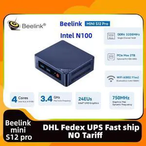 Beelink MINI S12 PRO N100 up to 3.4Ghz Mini PC RAM 16GB SSD 500GB DDR4 3200MHz Dual HDMI 4K 60HZ 4 Core WIndows 11 Official Desktop Computers