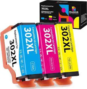 Remanufactured Ink Cartridge Replacement for Epson 302XL 302 XL T302 T302XL to use with Expression Premium XP-6100 XP6100 XP6000 XP-6000 3 Pack (1 Cyan, 1 Magenta, 1 Yellow)