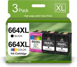 664XL Ink Cartridge Black and Color Combo Pack Replacement for HP 664 664XL Black/Color Ink Cartridge for DeskJet Ink Advantage 2135 1115 2675 3635 3775 (2 Black, 1 Color, 3 Packs)
