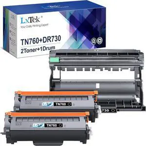 LxTek Compatible Toner Cartridge & Drum Unit Replacements for Brother TN760 TN-760 DR730 DR-730 to use with HL-L2350DW HL-L2395DW HL-L2370DWXL Printer (2 Toner Cartridges, 1 Drum Unit, 3 Pack)