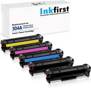 5 Inkfirst Remanufactured Toner Cartridges CC530A CC531A CC532A CC533A 304A Replacement for HP Color Laserjet CC530A CC531A CC532A CC533A 304A CM2320fxi CM2320n CM2320nf CP2025dn CP2025n CP2025x