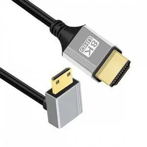 90 Degree Down Angled Mini HDMI 2.1 Ultra Thin HDTV Cable 8K 4K Hyper Super Flexible Slim Cord Type-A to Type-C for Camera HDTV
