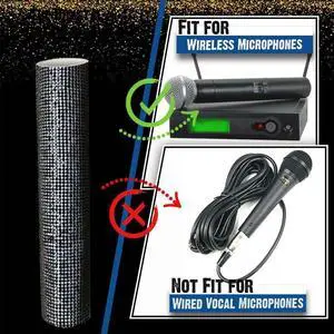 Mic Handle Cover,Sparkly Bling Rhinestones Mic Handle Sleeve for Party&TV Show,for Most Wireless Microphones, Black Rich