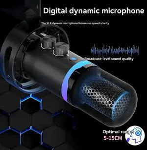 USB Condenser Microphone RGB Computer Microphone with Pop Filter for Studio Recording Streaming Content Creation