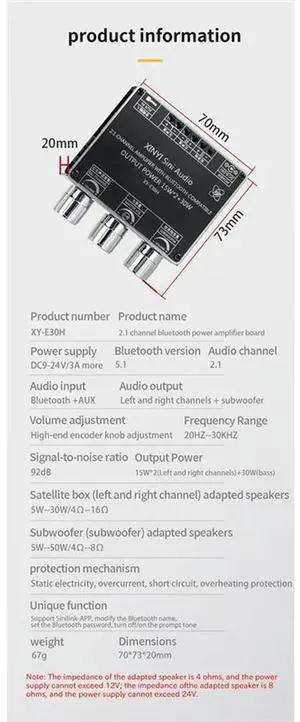 TWS TPA3118 Amplifier Audio Board Amplificador AUX 30W/20W BK3266 5.0 Bluetooth Receiver HY5066MTWS,Not Supports Call Rich