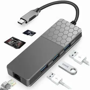 10 in 1 Type C Hub 3 USB2.0 1 USB3.0 5 Gbps USB C Splitter RJ45 Ethernet 100W PD for MacBook Pro/Air///Thinkpad/Etc