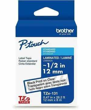 Brother Genuine P-touch TZe131 BK on CLR Label Tape Laminated 12mmX8m