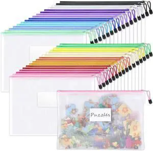 CATIFLIN 30 Pack Mesh Zipper Pouch Bags, A4 Letter Size, Clear Plastic Zip Bags for Board Game & Puzzle Storage, Waterproof & Durable Document Bags for Office, School, Travel, Art & Craft Supplies