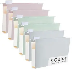 Y YOMA 6 Pack Extra Capacity Hanging File Folders Legal Size Accordion Decorative Reinforced File Folder Cute Colored Expandable Folder for Office Home with 1/5-Cut Adjustable Tabs, Morandi Color