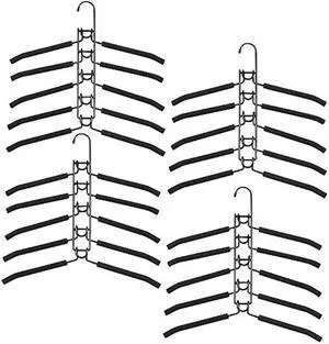 YiSeyruo Clothes Hangers Space Saving: 4 Pack 5 in 1 Multi Layer Metal Hanger Racks Non-Slip Foam Padded Heavy Duty Thick Magic Hanger Closet Organizers and Storage for Coat Sweater Suit T-Shirt.