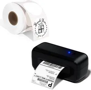 Phomemo Black 4x6 Shipping Label Printer with 2" White Round Label Stickers Roll for 4X6 Thermal Label Printer for Small Business Supplies