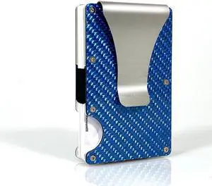 Wallet For Men - Slim Aluminum Metal Money Clip with 1 Clear window ID Badge Holder, RFID Blocking, Holds up 15 Cards with Cash Clip. Ultra-Thin Minimalist Wallet Blue