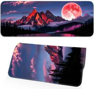 JVFYI Mouse Pad, Gaming Mouse Pad, Large Laptop Pad, Waterproof and Non-Slip, Gaming Office Sewn Desk Pad, 31.5x11.8 Inch Extended, Moon Mountain