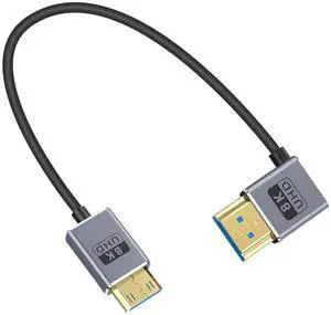 BUCIER 8K Coaxial Right Angle HDMI to Mini HDMI Cable 1FT/30cm, [48Gbps, 8K@60Hz, 4K@240Hz], Ultra Thin Mini HDMI 2.1 Male Cable for Camera, Camcorder, Tablet, Laptop, Raspberry Pi Zero