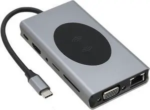 13 in 1 Type C Hub Multifunctional Docking Station for 4K 30Hz HD Multimedia Interface VGA USB3.0 Memory Card RJ45 PD AUDIO3.5 Wireless Charging for OS X Andriod Aluminum Gray (Grey)