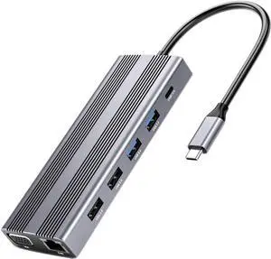 TypeC Dock HDMI-compatible2x USB Adapter Hub 10Gbps TypeC Rj45 TF Reader Docking Station 8-Port for Laptop Keyboards