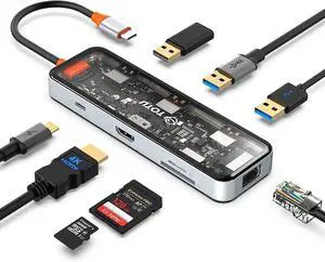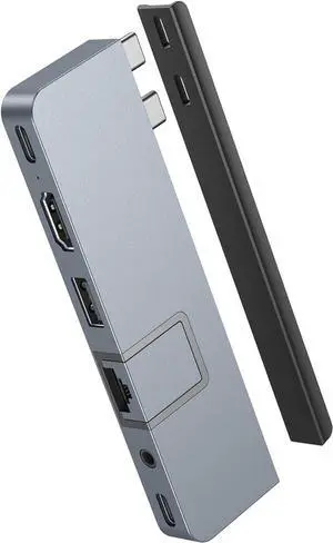 tiavalmax USB 3.0 Hub 4 Ports 5Gbps, Dual USB-A/C Aluminum Splitter, Ultra-Slim Multiport Expander Adapter for iPhone 16/15,MacBook, iPad, Laptop, PC, Desktop, HDD, Keyboard, Mouse, Xbox, PS5,Android- Model #: LEMCAFB0F37HX4QK