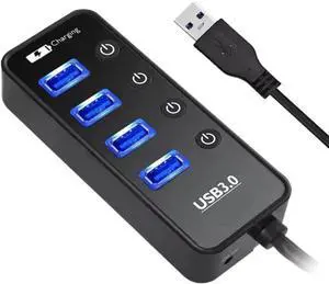 USB 3.0 HUB Power Adapter 4 Port Multi USB Splitter with Independent Switch Expander Speed Compatible with Computer Accessories