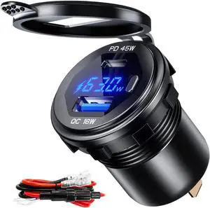 GOBGOD USB C Car Charger Socket 12V/24V USB Outlet, 45W PD Type C & 18W QC 3.0 Car Dual USB Port for Car Boat Marine Bus Truck Golf RV