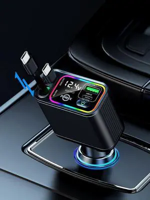 Retractable Car Charger USB C,145W Type C Car Charger Fast Charging with Dual Retractable USB C Cable and USB Ports, Compatible with iPhone 16/15,S25/24/23/22, Pixel 9/8/7