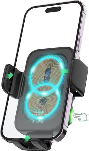 SooPii Dual Coils Wireless Car Charger,15W Fast Wireless Charging Mount for Car,Auto Clamping Phone Holder Charger for lPhone 16/15/14 Pro,Samsung Galaxy Z Fold4/3/2/Flip4/3/S24/S23