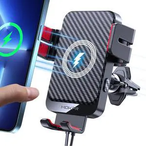 Wireless Car Charger, MOKPR 15W Fast Charging Auto-Clamping Car Phone Holder Wireless Charger Air Vent Car Phone Mount for iPhone15/14/13/13 Pro/12 pro/12/11/X/8, Samsung Galaxy S24/S23/S22/S21/S20