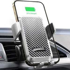 Wireless Car Charger, JOYMASS 15W Fast Charging Auto Clamping Car Charger Cell Phone Holder Mount Vent for iPhone 15 14 13 12 Mini Pro Max, Samsung Galaxy S24 Ultra S23 S22 S21+ Note 20, etc - Silver
