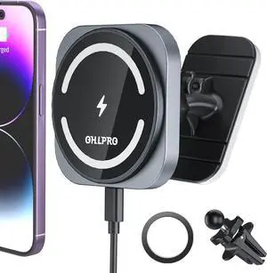 OHLPRO for MagSafe Car Mount Charger, 15W Fast Charging Car Magnetic Phone Holder for Dashboard and Air Vent, Compatible with iPhone 15/14/13/12 Series