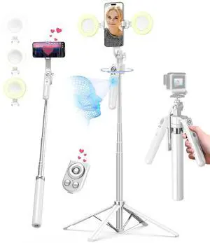 71 Auto Face Tracking Tripod for iPhone with Light,360° Rotating Phone Stand with Rechargeable Remote Control for TikTok Vlog, Phone Tripod for Android Camera/GoPro/Ring Light (White)