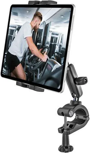 Tablet Holder Mount for Treadmill/Peloton/Spin Bike/Exercise Bicycle/Stroller/Stationary Indoor Bike/Elliptical/Handlebar Clamp, for 4.7-13" iPad Pro/Air/Mini/Galaxy Tab/Fire HD/iPhone/E-Book