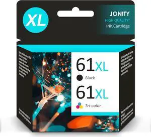 Jonity 61XL Ink Cartridges Replacement 61 XL Ink HP61 Ink Cartridges for Printer Envy 4500 4502 5530 5534 officejet 4630 4635 Deskjet 3050A 1010 1512 3054 CR259FN (1 Black, 1 Tri-Color)