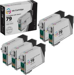 LD Remanufactured Replacement for Epson T0791 Set of 5 Black High Yield Ink Cartridges Includes: 5 T079120 Black ...