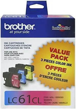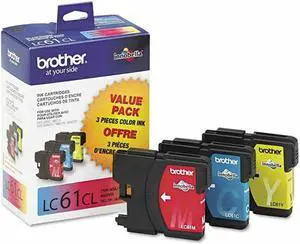 Brother LC61CL 3-Pack Ink Cartridge, 325 Page-Yield, Cyan Magenta Yellow