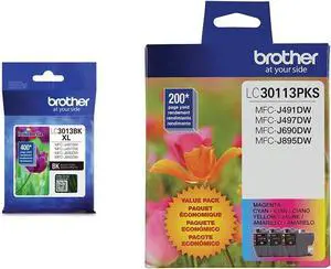 Brother LC3013BKS Black Ink Cartridge (Super High Yield) + Brother Genuine LC30113PKS Standard Yield Cyan/Magenta/Yellow Ink Cartridge Set