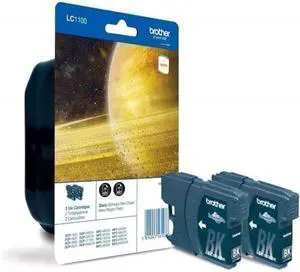 BROTHER LC-1100BK Inkjet Cartridges, Black, Twin Pack, Standard Yield, Includes 2 x Inkjet Cartridges, Genuine Supplies