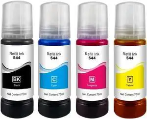 T544 544 Dye Ink 70ml Bottle Refill Kit - Compatible with Epson EcoTank L3150 L3110 L3100 L3210 L3250 L1110 5190 - Inkjet Printer(4pcs)