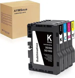 AYMSous SG500 SG1000 Sublimation Ink Cartridge Latest Upgraded Chip Compatible for Sawgrass Virtuoso SG500 SG1000 Printer (1 Black, 1 Cyan, 1 Magenta, 1 Yellow, 4-Pack SG500 Ink)