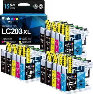 E-Z Ink Pro LC203 Compatible Ink Cartridges Replacement for Brother LC203XL LC201 XL to use with MFC-J4420DW MFC-J885DW MFC-J880DW MFC-J485DW MFC-J4620DW (Black, Cyan, Magenta, Yellow, 15 Pack)