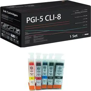 PGI-5 CLI-8 Ink Cartridges Compatible for Canon PIXMA iP3300 iP4200 iP4500 iP5200 iP5200R iP5300 iP6600D iP6700D MP500 MP510 Printers, with Chip, High Yield 600 Pages (1 Set)
